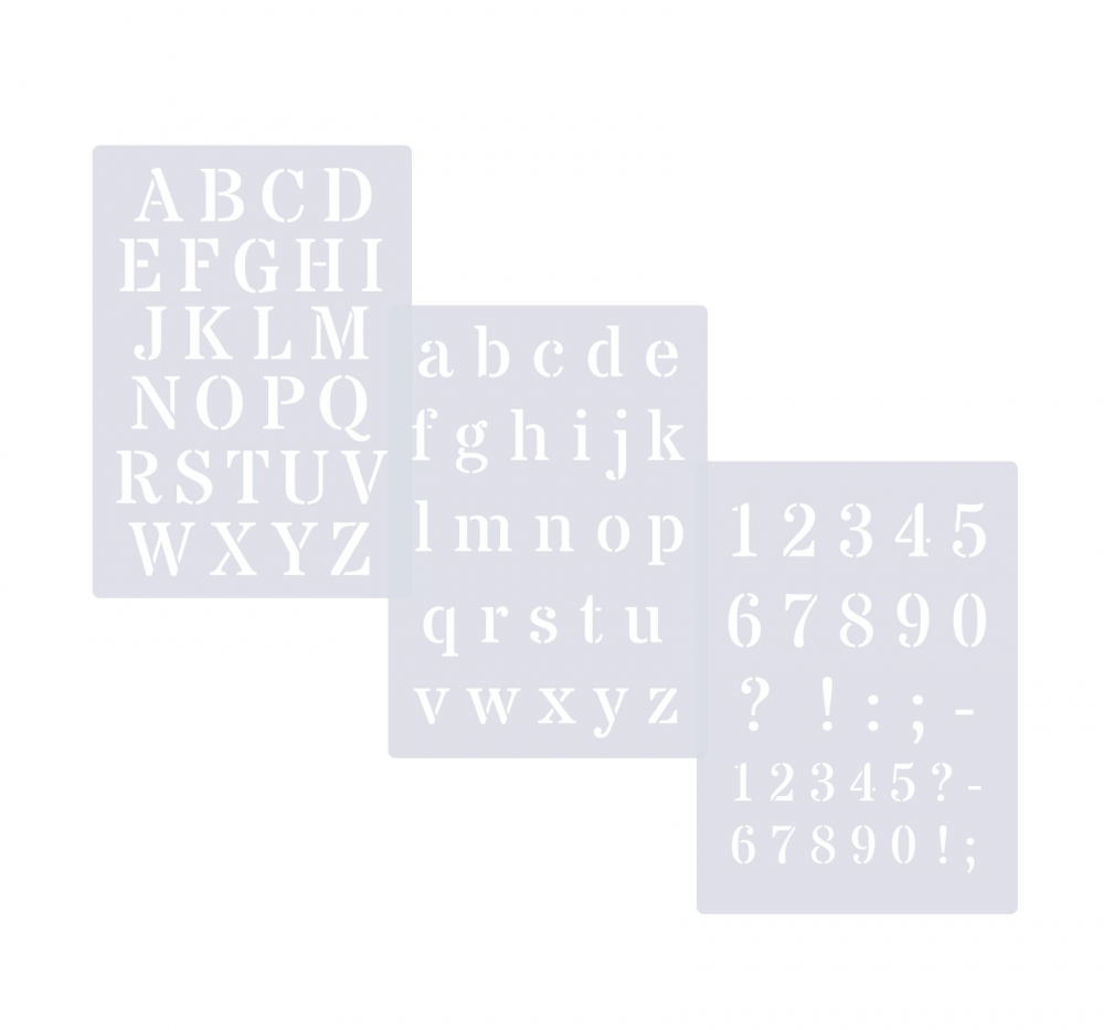 3er Schablonen Set Nr.5 - Höhe ca. 2,5cm Druckbuchstaben und Zahlen