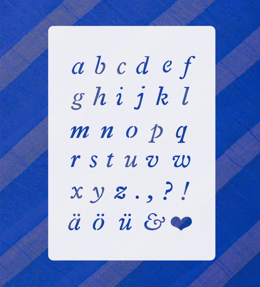 Schablone kursives Alphabet kleinBuchstabenhöhe: