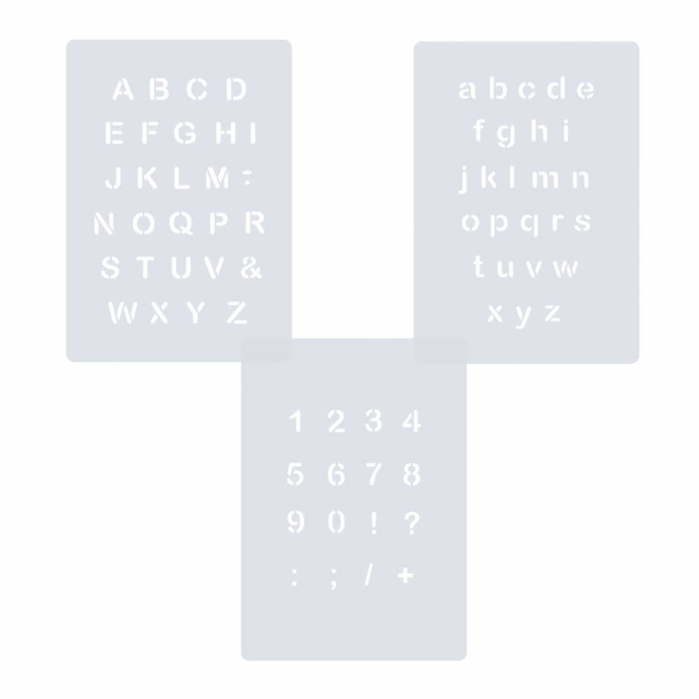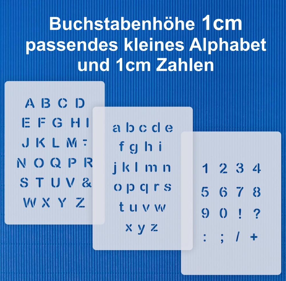 3er Schablonen Set Nr.02 ● ca. 1cm hoch extra kleine Buchstaben groß, passende kleine Buchstaben und Zahlen